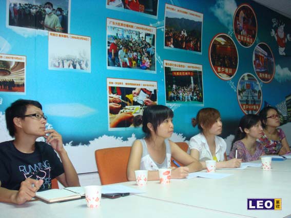 July 13, 2010 the ladies in sale service department of Guangzhou Leo Cosmetic Co.,Ltd, led by President Mr Chaowei Huang, visited the business center of Alibaba Guangzhou and participated into the class of attitude and sales programme. It showed us the understanding - recognition - recognized three sales process which impressed our colleague a lot. After class, everyone visited the work site and communicated with the staffs of alibaba. The working attitude of alibaba people infected everyone there. All the staffs will put more effort to serve the customers of Leo.